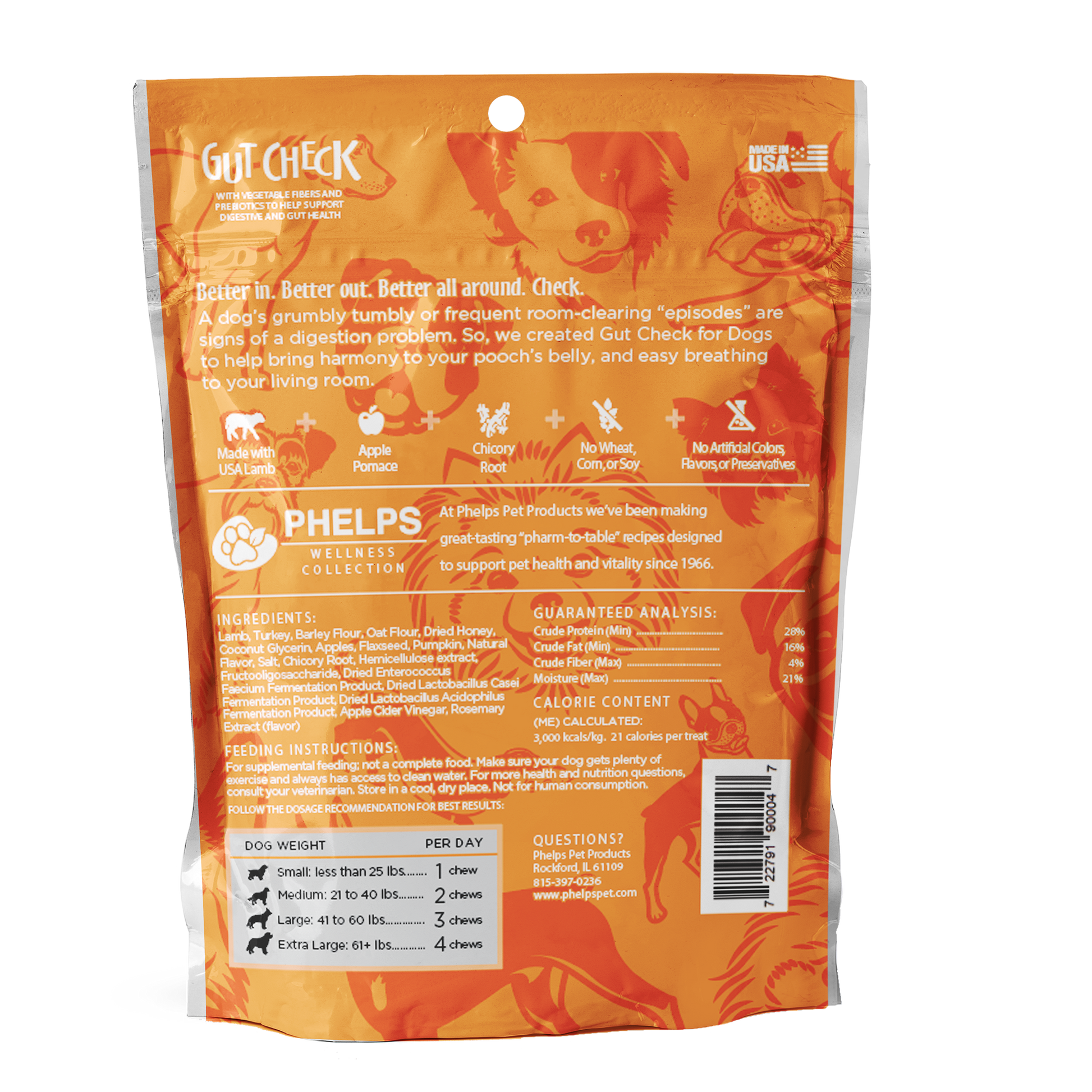 Formulated with ingredients selected to help support gut health, digestion, and nutrient absorption, Gut Check works to bring balance back to your dog’s belly. The result is more comfortable digestion for your dog and fresher air for your home.